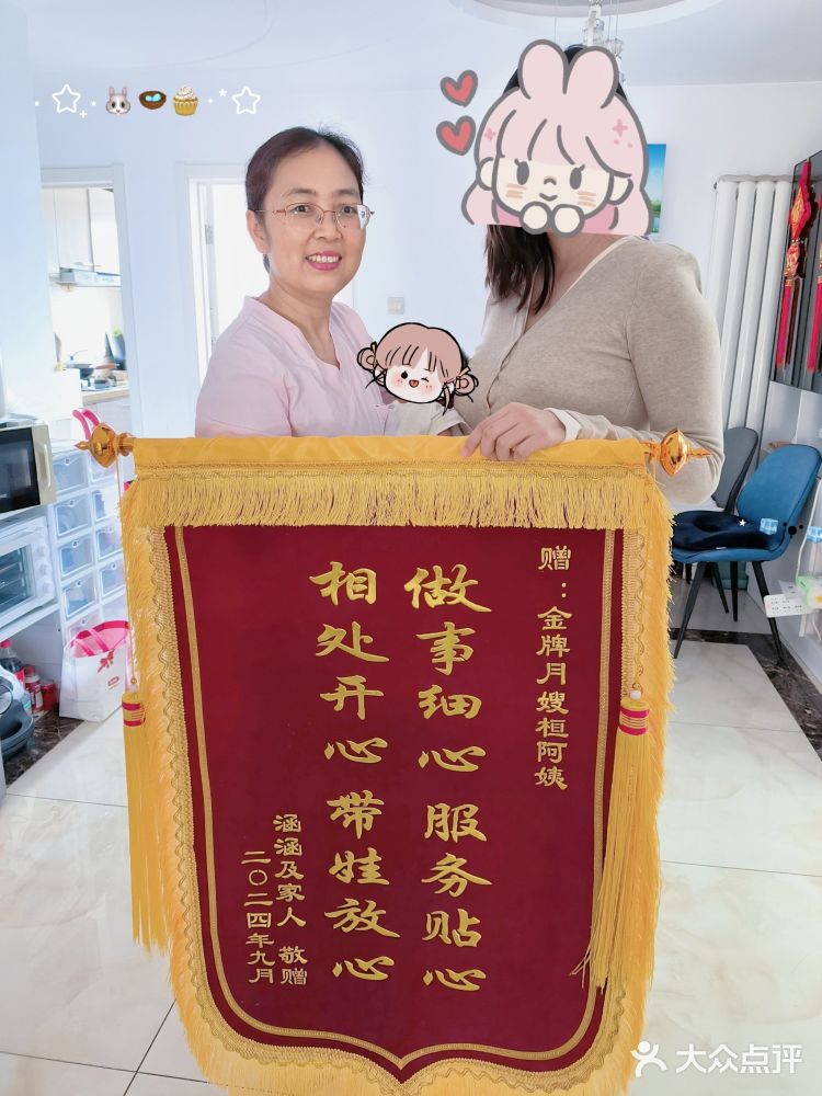2024-10-09非常慶幸自己月子期間請到的神仙月嫂桓春意,因為有桓姐的照顧,月子期間心情非常愉悅,寶寶也特別健康。在家里的這段時間,用她的專業(yè)、愛心、干凈麻利、手藝好征服了我們一家人。 1.專業(yè) 桓姐用多年的月嫂經(jīng)驗幫助我開奶、梳通乳腺、按摩頭部背部以及產(chǎn)后修復(fù)。每次喂奶都是桓姐親自上手調(diào)整寶寶的含乳姿勢,不斷嘗試各種喂奶姿勢,就為了讓寶寶吃上奶的同時,讓我實現(xiàn)了親喂,真的很感謝桓姐。此外,照顧寶寶的手法也相當(dāng)熟練細(xì)致,每個環(huán)節(jié)都做的很到位,從觀察寶寶作息狀態(tài),發(fā)現(xiàn)濕疹、紅疹、脹氣、上火等,每次都很及時地作出反應(yīng)并提出對應(yīng)見效快地方法;日常進(jìn)行撫觸,黑白卡訓(xùn)練、抬頭,追視追聽,清潔等做的都很優(yōu)秀,還在下戶前把我們都教會了。 2.愛心 桓姐是一個開朗愛笑的人,在照顧寶寶時細(xì)致耐心,每天都笑呵呵的特別有感染力,寶寶也跟著變成愛笑的寶寶,也讓我們的心情變得很舒暢。大家都知道月子期間產(chǎn)婦會變得敏感,確實,尤其是桓姐要下戶前,我特別焦慮,但桓姐經(jīng)常陪聊,緩解我的情緒壓力,觀察我的身體狀態(tài)、情緒狀態(tài),及時給到我反饋,做好下戶前的各種交接,確保下戶后我們也能平穩(wěn)過渡。 3.干凈麻利 桓姐在家里的這段時間除了會負(fù)責(zé)家里的三餐也會主動承擔(dān)家里的家務(wù),做事干凈麻利。為人勤快注意衛(wèi)生,一天的時間安排合理,有時候經(jīng)常感嘆一個人一天怎么能做這么多事情。 4.手藝好 非常值得一提的是桓姐的好手藝,能把家里的各種食材組合做出色香味俱全的飯菜,葷素搭配合理,會根據(jù)你的身體狀況給你安排合理的飲食,關(guān)鍵是做飯還很快,也爭取了更多照顧寶寶和我的時間。 感恩在自己人生最脆弱、最艱難、最重要的時期遇見了這么好的月嫂阿姨,給我了很多陽光和溫暖,希望陪我度過40多個凌晨喂奶時刻的桓春意姐永遠(yuǎn)被溫柔以待。